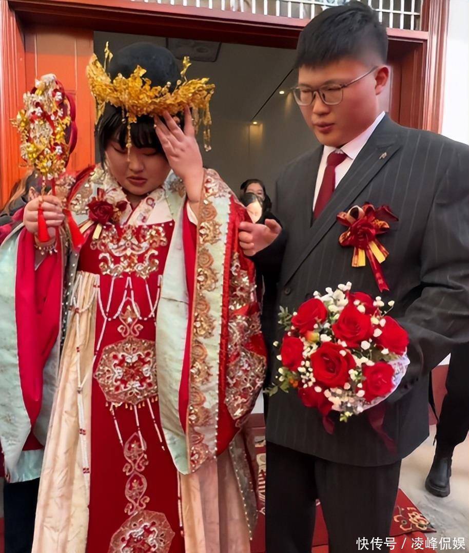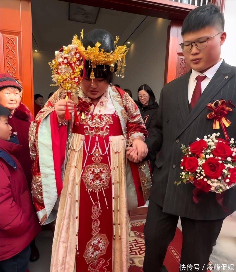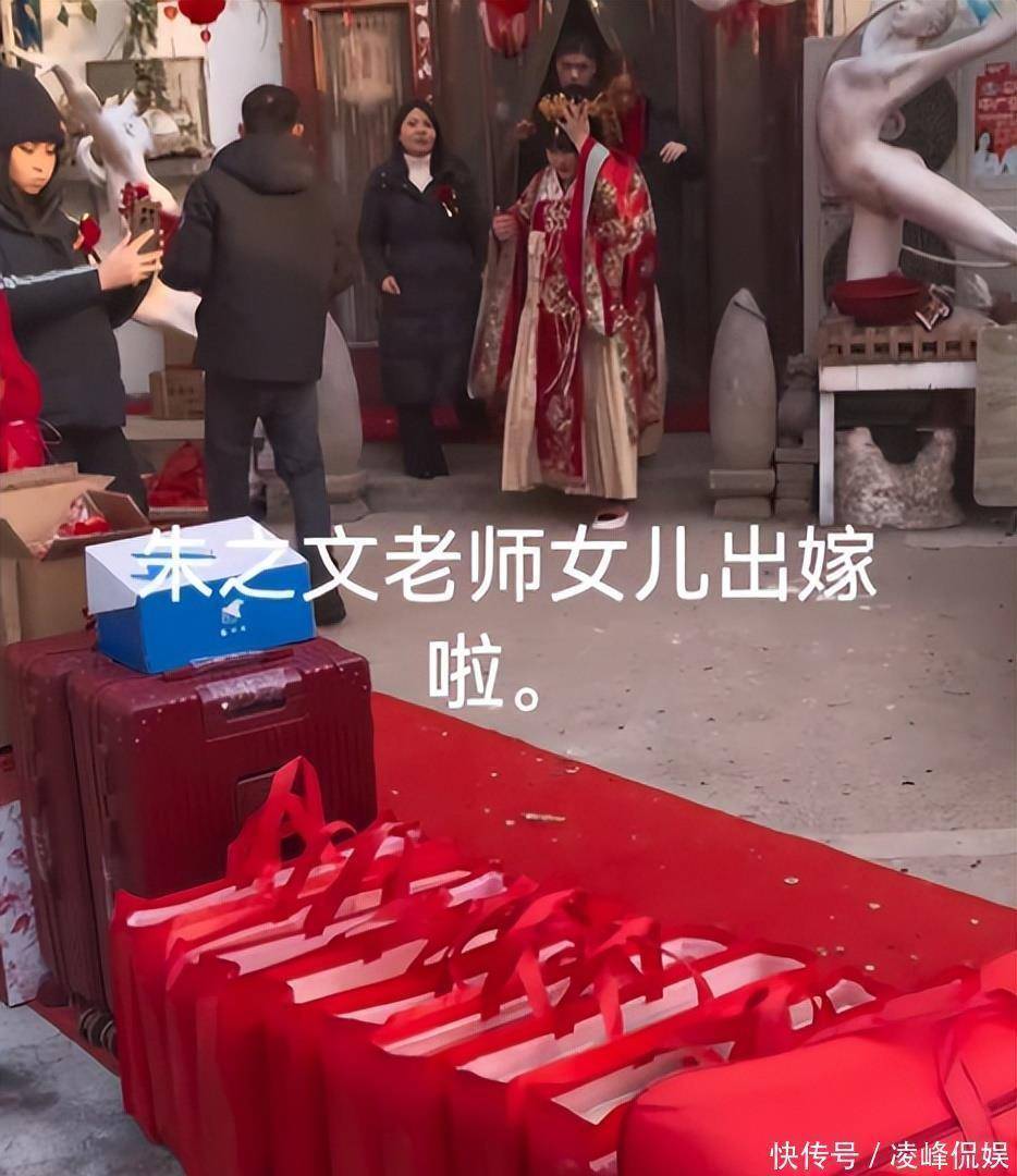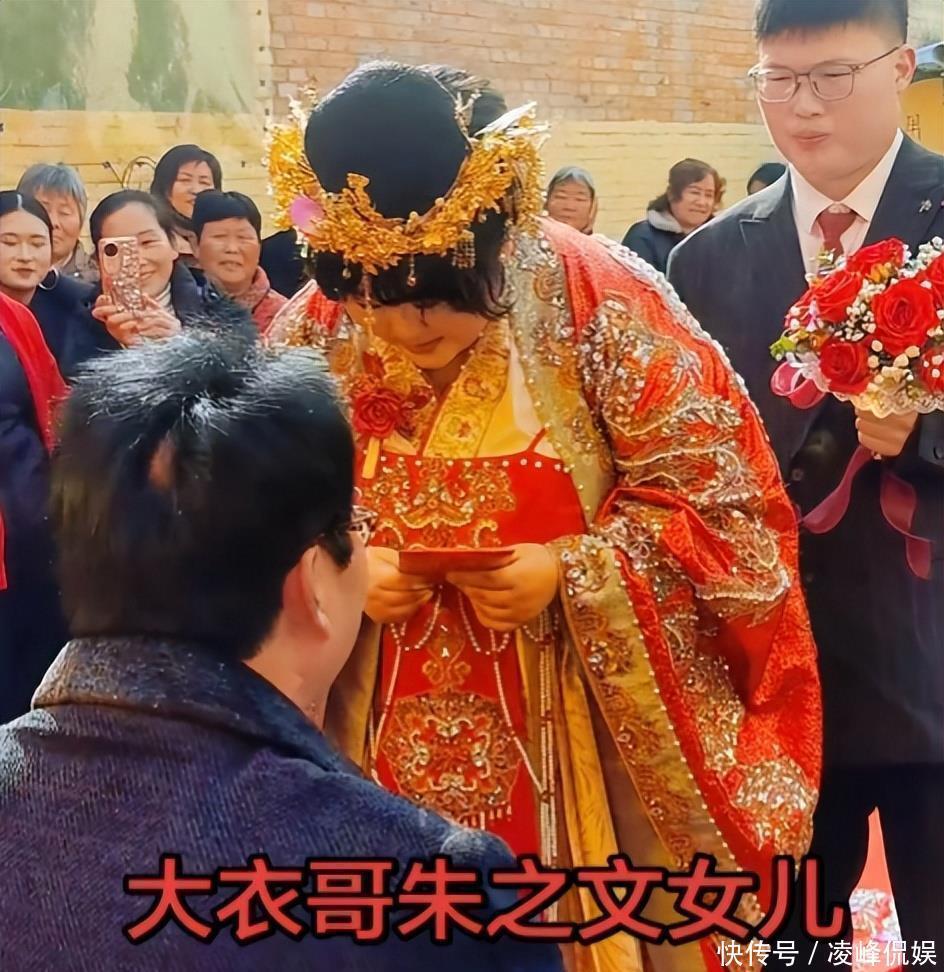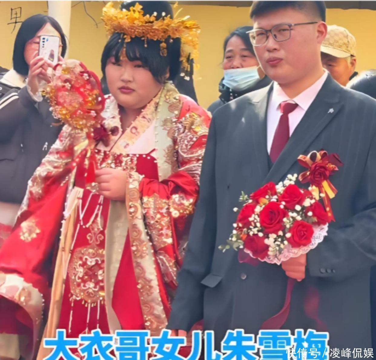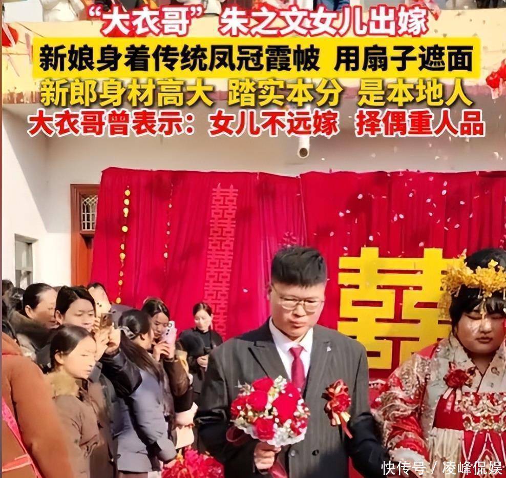 老宅子门口挂了不少红彤彤的东西,屋里那闺女打扮得跟平时不一样了。她身上套着老式结婚穿的行头,脑袋上插着些亮闪闪的物件,整个人看着挺板正的。朱雪梅倒还是老样子,身上肉乎乎的没见少。那天大伙儿眼睛都往她女婿身上瞟。这人以前没露过面,好些人一瞅他那张脸就嚷嚷开了。他们都说这女婿跟朱小伟简直一个模子刻出来的。硬要找点不同的话,就是他鼻梁上架了副眼镜,显得文绉绉的。本来挺高兴的日子,网上却冒出些不中听的话。有人嘀咕这男的是冲着钱来的,也有人说他自个儿挣钱不少,还有人挑出他些毛病。大衣哥家这新姑爷究竟什么来路呢。